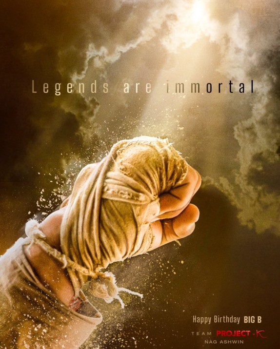 Creative director Nag Ashwin’s most ambitious project ‘Project K’ starring Rebel Star Prabhas is in the production stages. Bollywood megastar Amitabh Bachchan is playing a crucial role in the movie that marks the Tollywood debut of Bollywood actress Deepika Padukone. It’s 80th birthday of Amitabh Bachchan. Team Project K wished the legendary actor, on the occasion, and released a new poster, showing his hand in a fist gesture. The words on the poster- ‘Legends are immortal’ specify Big B’s character.
