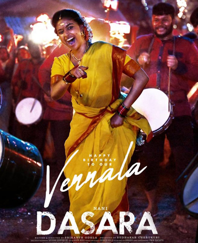 நேச்சுரல் ஸ்டார் நானி நடிப்பில் மிகவும் எதிர்பார்க்கப்படும் பான் இந்திய திரைப்படமாக உருவாகி வருகிறது “தசரா”. நானியின் ஃபர்ஸ்ட் லுக்கில் தொடங்கி சமீபத்தில் வெளியான முதல் பாடல் ‘தூம் தாம்’ வரை ரசிகர்களிடம் இப்படம் பெரும் வரவேற்பைப் பெற்றதோடு, படத்தின் மீதான ஆர்வத்தையும் அதிகப்படுத்தியுள்ளது. இந்நிலையில், தேசிய விருது பெற்ற நடிகை கீர்த்தி சுரேஷின் பிறந்தநாளையொட்டி, வெண்ணிலாவாக நடிக்கும் அவரது கதாப்பாத்திரத்தின் ஃபர்ஸ்ட் லுக் இன்று வெளியிடப்பட்டுள்ளது.