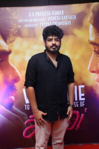 இசையமைப்பாளர் ஜஸ்டின் பிரபாகரன் பேசுகையில், ” இந்த படத்தின் மூலம் விக்னேஷ் கார்த்திக் என்ற ஒரு படைப்பாளி நண்பனாக கிடைத்திருக்கிறார். அவர் தன்னுடைய எண்ணங்களை நேரடியாக கூறி விடுவார். இது எனக்கு பெரும் உதவியாக இருந்தது. ஜீ.வி சார் தான் ஹீரோ என்றதும் முதலில் எனக்கு சற்று பயம் இருந்தது. ஏனெனில் என்னுடைய உதாரண புருஷர்களில் அவரும் ஒருவர். நான் சென்னைக்கு வந்து உதவியாளராக பணியாற்ற வேண்டும் என விரும்பிய இசையமைப்பாளர்களில் அவரும் ஒருவர். அவர் நடிக்கும் படத்தில் இசையமைப்பாளராக பணியாற்ற வாய்ப்பு கிடைத்த போது மிகவும் மகிழ்ச்சியாக உணர்ந்தேன். பணியாற்றும்போது என்னை நல்ல சௌகரியமான நிலையில் பணிபுரிய அனுமதித்தார். இந்த படத்தில் பகவதி மற்றும் மாதேஷ் ஆகிய பாடலாசிரியருடன் பணியாற்றி இருக்கிறேன். இவர்களுடன் தொடர்ந்து பணியாற்ற வேண்டும் என்ற விருப்பமும் இருக்கிறது. யுவன் சங்கர் ராஜாவிற்கு சிறப்பு நன்றி ” என்றார்.